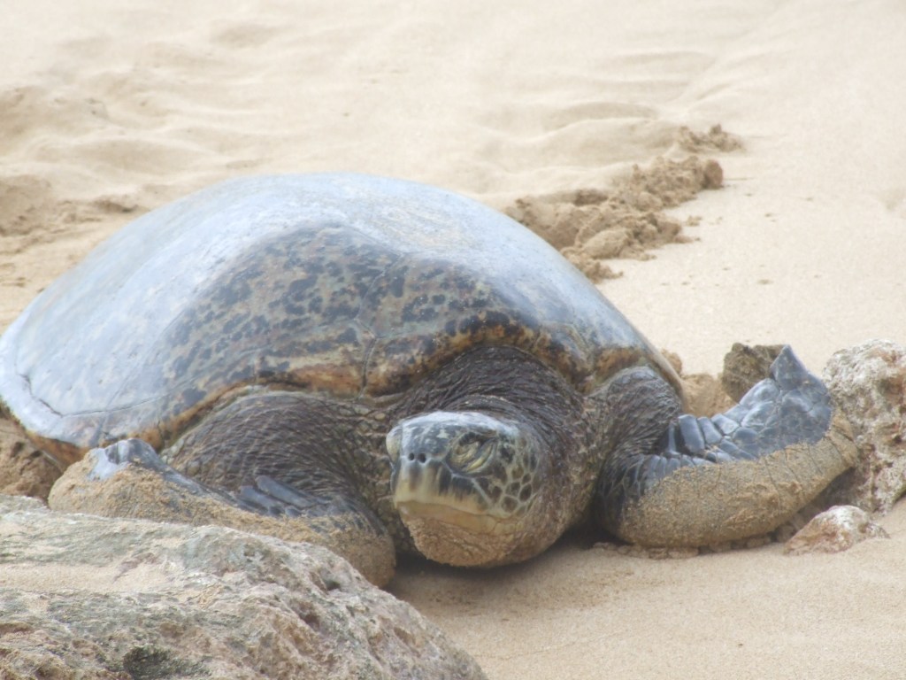Unlike most reptiles with shells, Honu are unable to retreat back into their shells for safety and instead rely on their strength and camouflage for survival. They have also adapted a distinct awareness of predators and avoid areas where they know predators lurk. Like other reptiles turtles also have a temperature-dependant sex determination: warmer temperatures/sand temperatures produce more females and colder conditions produce more males, which makes climate change particularly worrying for the sustainability of Honu in Hawaii, with air temperatures warming by 1.5 degrees celsius in a century.