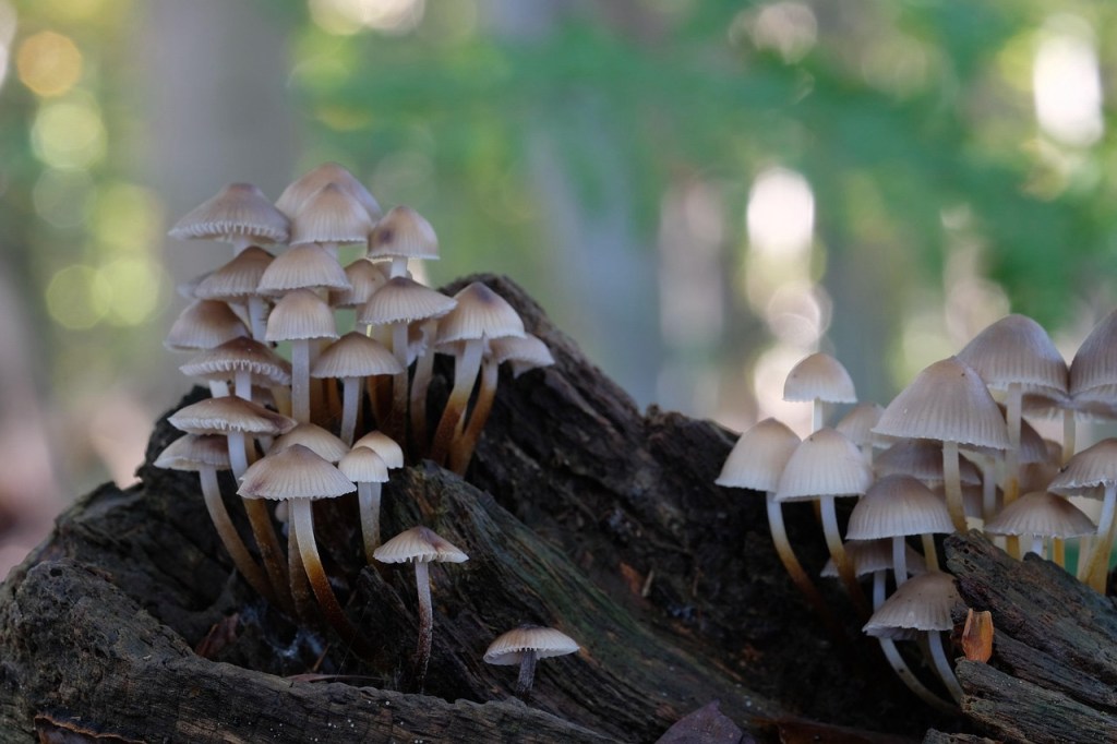 Fungi, lichens and mosses also like to colonise the decomposing environment.