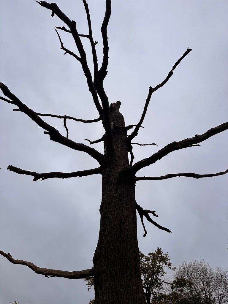 Standing deadwood, or just veteran trees commonly known as snag trees. These trees create individual habitats, the decaying bark is used by bats for roosting sites, and many other birds and small mammals make holes in the loose bark, decaying heartwood is utilised by invertebrates for food and nutrients.