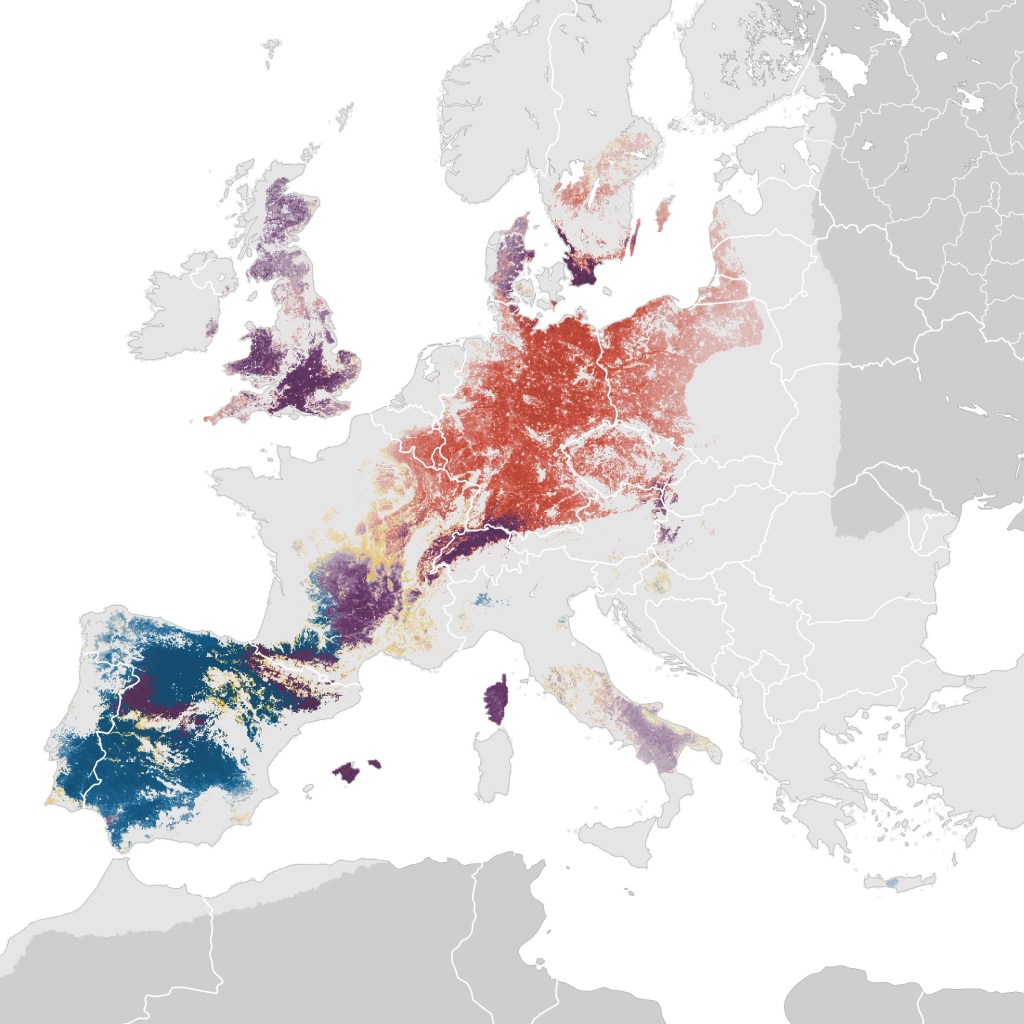 The red kite only breeds only breeds in Europe but has historically lived West Asia and Northern Africa, with around 32,200–37,700 currently known breeding pairs in Europe. They are not necessarily equally widespread through Europe however large migrational and non migrational populations still exist as far as Western Belarus , the UK and Spain with connective bands between all -NESW- of Europe.